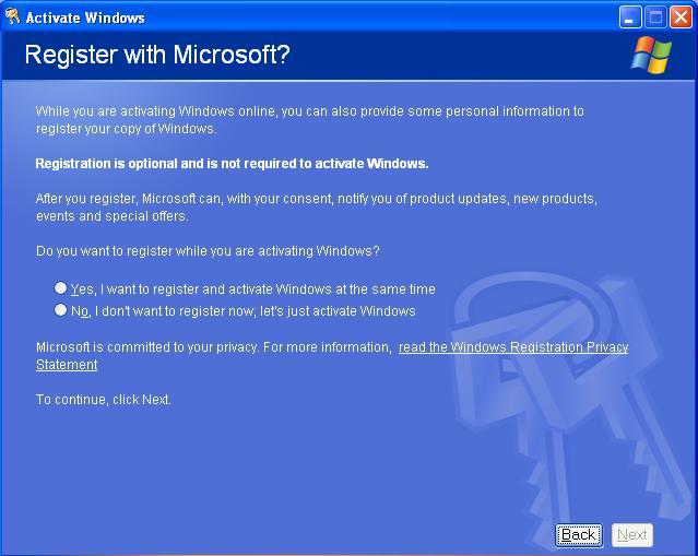 activate Windows screen will appear. Click on "Yes, lets activate Windows